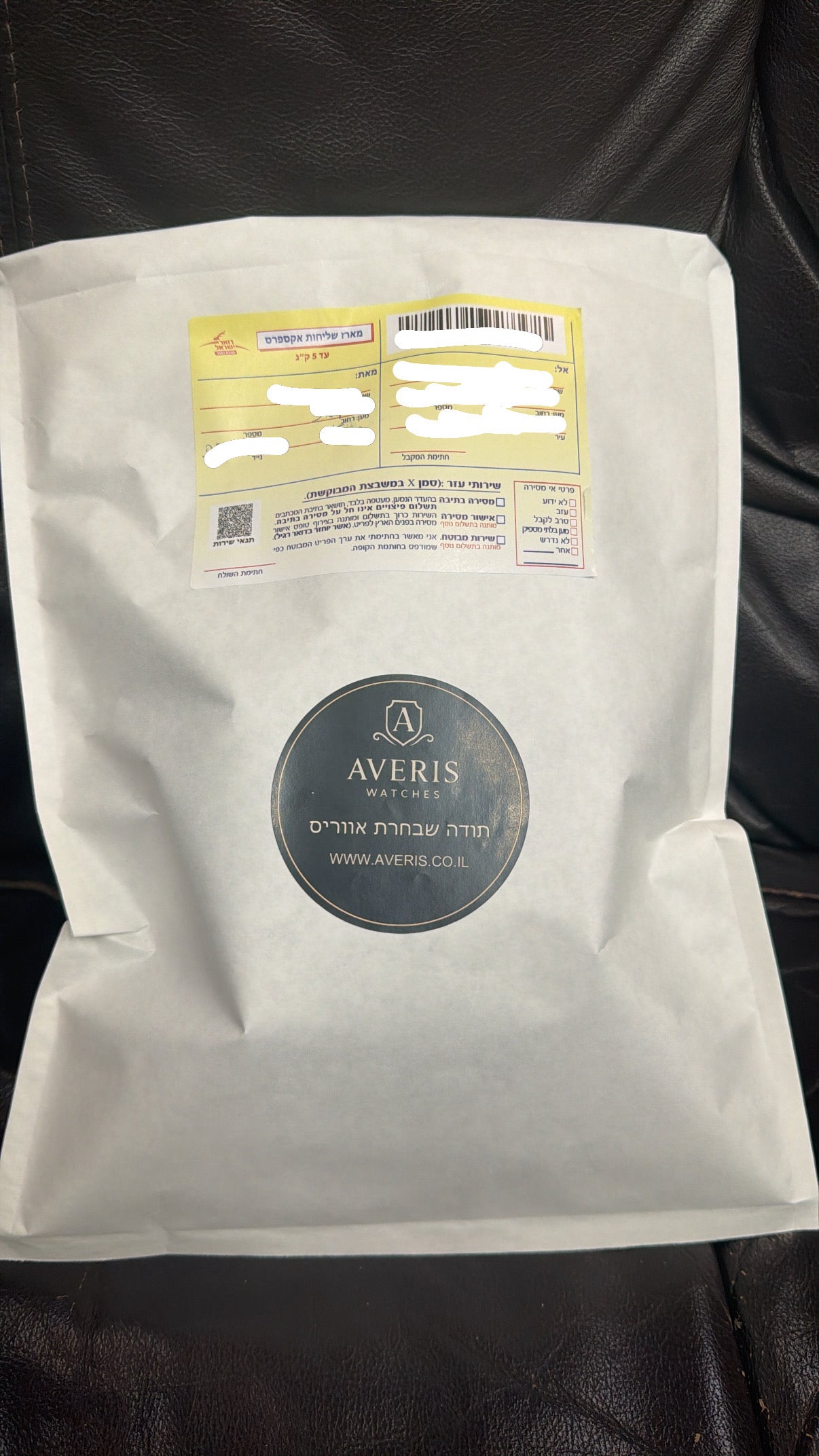 כך נראית הזמנה רגע לפני שהיא יוצאת אליכם. כל שעון נארז בקפידה, נבדק פעם נוספת, ונשלח ישירות מהסטודיו של Averis אל היד שלכם.